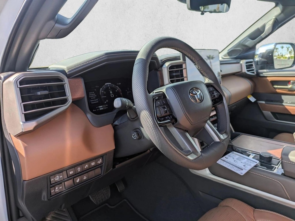 • Leather-wrapped power tilt/telescopic steering wheel with phone, audio, display/infotainment, and driver assist controls.